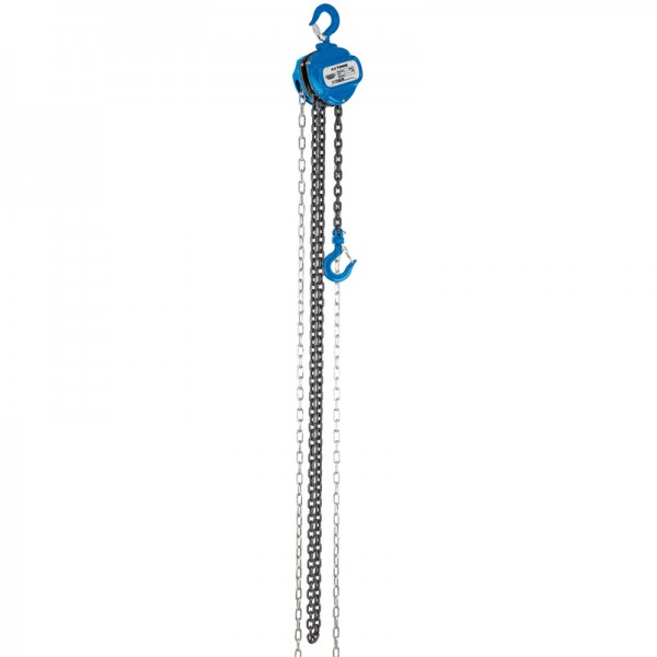Expert Quality, ideal for the workshop or factory use. The chain hoist has a triple spur geared shaft and pinion with load braking and double pawls. The compact gear housing allows use in areas of limited clearance. High quality welded chain with safety latches on the load hooks.