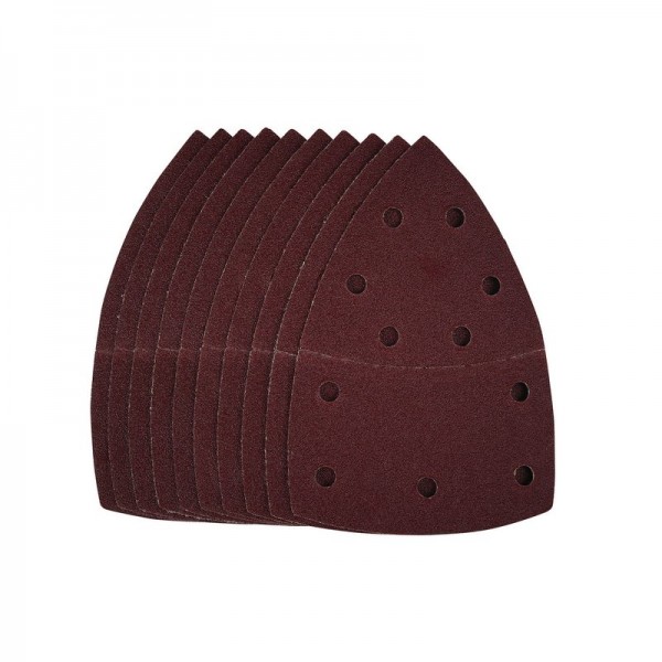These multi-sanding sheets have a perforated tear off delta sheet for detail sanding (102 x 62mm, 93mm). They are made from aluminium oxide that is resin bonded to provide improved grain adhesion, anti-static qualities and long-lasting performance. The heavy-duty E-Weight backing paper makes the sanding sheet more durable – able to withstand the toughest jobs. The hook and loop backing offers decent adhesion to facilitate the fast changing of sanding sheets. The 11 pre-punched 8mm holes help eliminate clogging and improve the dust extraction. Ideal for sanding and finishing wood, metal, aluminium alloy, painted surfaces, plastic and fillers. Compatible with most mouse detail sanders with hook and loop backing pads including Draper Stock No. 57681.