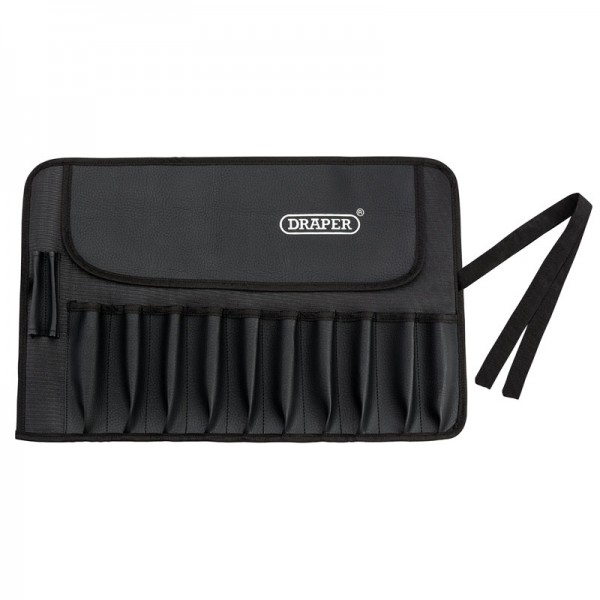 Water - resistant polyester with ten storage pockets and two tool loops. Packed in polythene bag with display card.