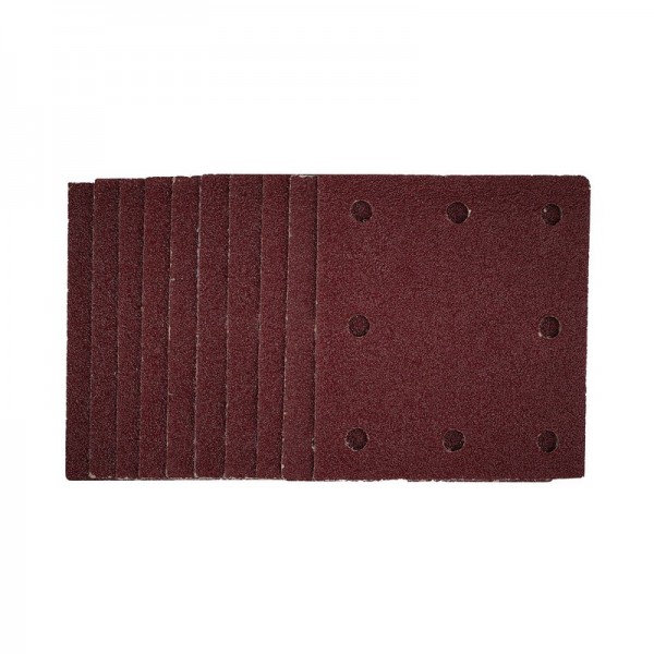This pack of 1/4 sanding sheets (115 x 105mm) are made from premium quality aluminium oxide that is resin bonded to provide improved grain adhesion, anti-static qualities and long-lasting performance. The heavy-duty E-Weight backing paper makes the sanding sheet more durable – able to withstand the toughest jobs. The hook and loop backing offers decent adhesion to facilitate the fast changing of sanding sheets. The eight pre-punched 8mm holes improve dust extraction. Ideal for sanding and finishing wood, metal, aluminium alloy, painted surfaces, plastic and fillers. Compatible with most 1/4 sanders with hook and loop including Stock No. 57691.