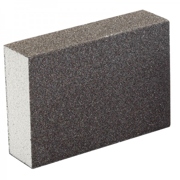 Dense foam sponge with two different grades of abrasive grit. Ideal for sanding angles, contoured or flat surfaces. Overall size: 102 x 70 x 23mm. Display packed.