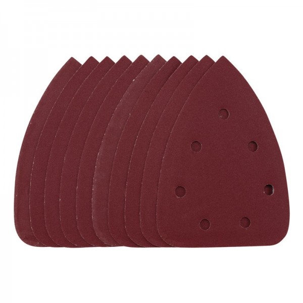 This pack of 140mm detail sanding sheets are made from premium quality aluminium oxide that is resin bonded to provide improved grain adhesion, anti-static qualities and long-lasting performance. The heavy-duty E-Weight backing paper makes the sanding sheet more durable – able to withstand the toughest jobs. The hook and loop backing offers decent adhesion to facilitate the fast changing of sanding sheets. The seven pre-punched 8mm holes improve dust extraction. Ideal for sanding and finishing wood, metal, aluminium alloy, painted surfaces, plastic and fillers. Compatible with most detail sanders with 140mm hook and loop backing pads including Stock No. 00608.