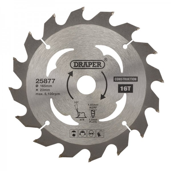 TCT Cordless Construction Circular Saw Blade for Wood & Composites, 165 x 20mm, 16T