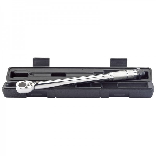 Easy to use torque wrench. The click-type operation and micrometer adjustment allow the user to apply the correct torque when required. The torque value range is 20 - 110Nm. Clockwise right-hand thread torque application only. Supplied in a blow mould case.