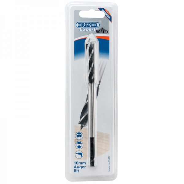 Expert Quality, revolutionary auger bits, manufactured with four razor sharp carbon steel cutting edges. Their unique design helps the bits pull themselves through the material when drilling, making tasks effortless whilst delivering perfect holes every time. All sizes have a strong 6.35mm hex shank. Display packed.