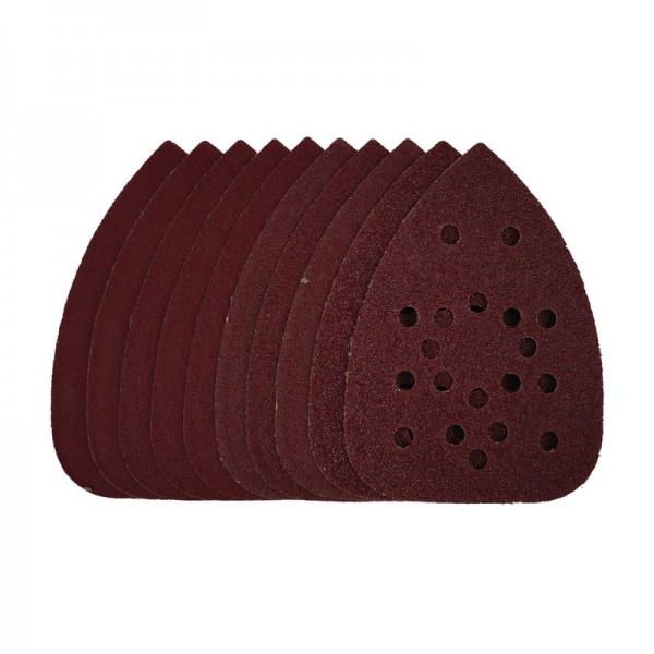 This pack of 140mm detail sanding sheets are made from premium quality aluminium oxide that is resin bonded to provide improved grain adhesion, anti-static qualities and long-lasting performance. The heavy-duty E-Weight backing paper makes the sanding sheet more durable – able to withstand the toughest jobs. The hook and loop backing offers decent adhesion to facilitate the fast changing of sanding sheets. The 19 pre-punched 8mm holes improve dust extraction. Ideal for sanding and finishing wood, metal, aluminium alloy, painted surfaces, plastic and fillers. Compatible with most detail sanders with 140mm hook and loop backing pads including Stock No. 02063.