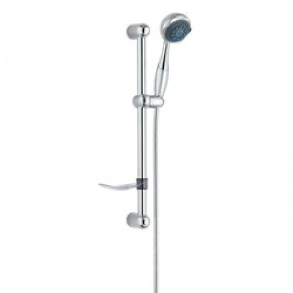 An easy-fit shower kit consisting of hose, shower head, riser rail and soap dish